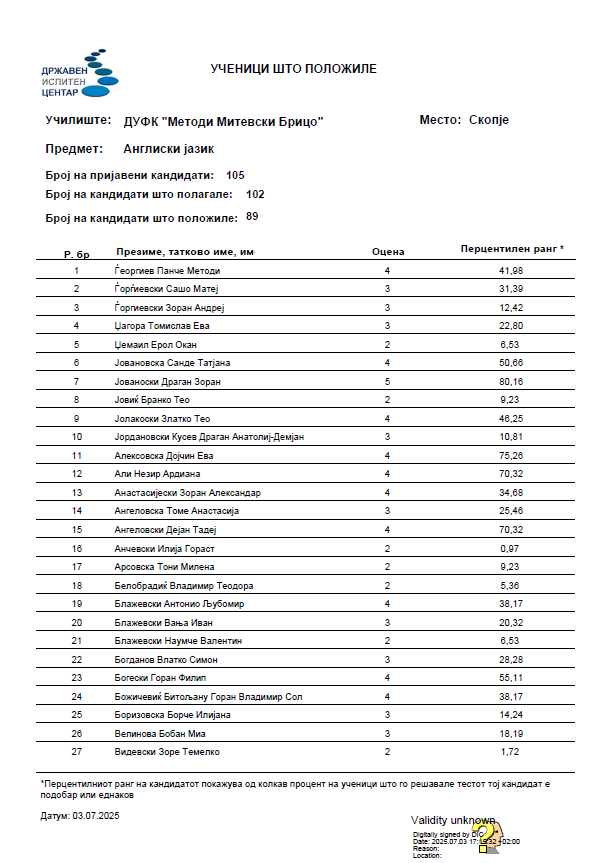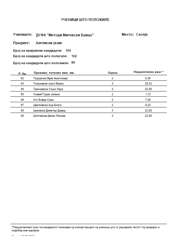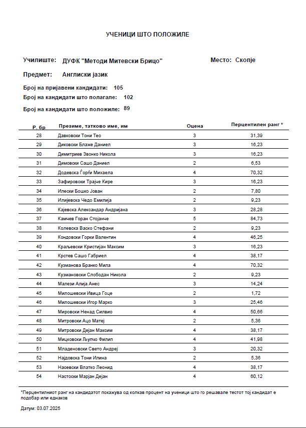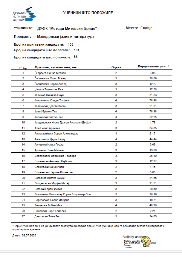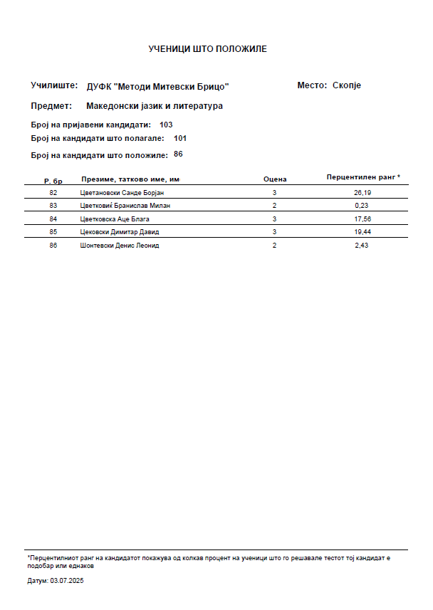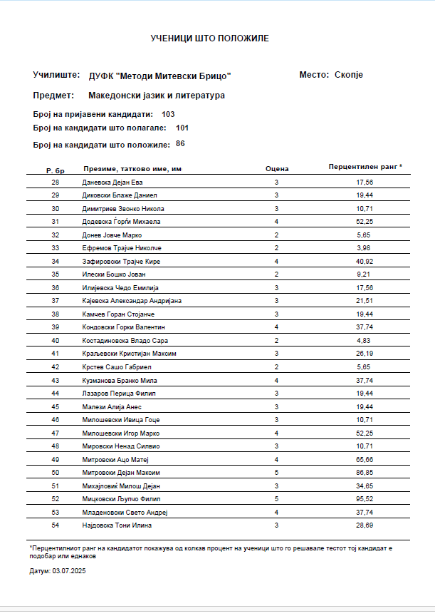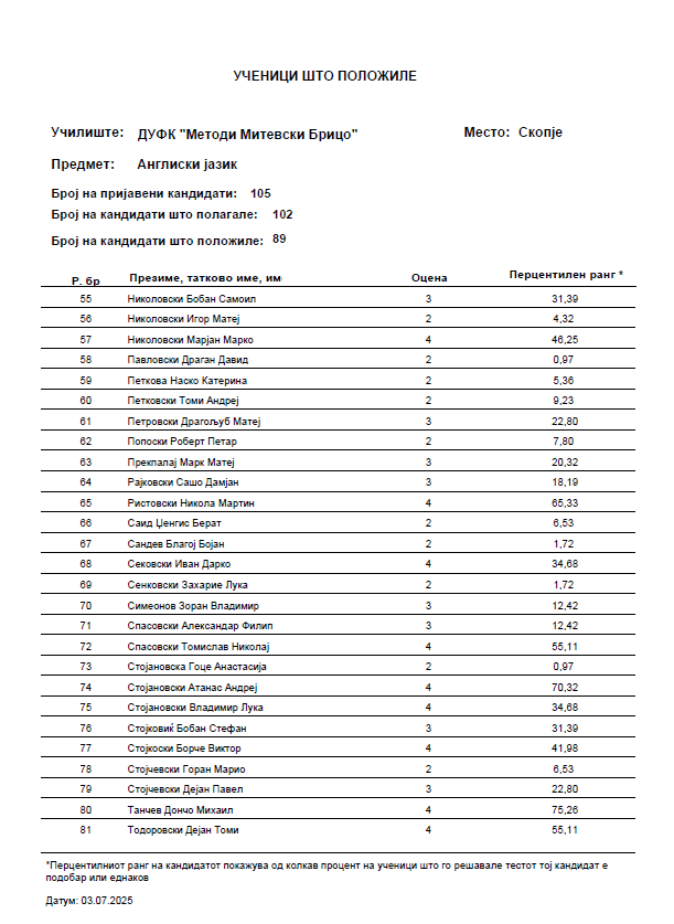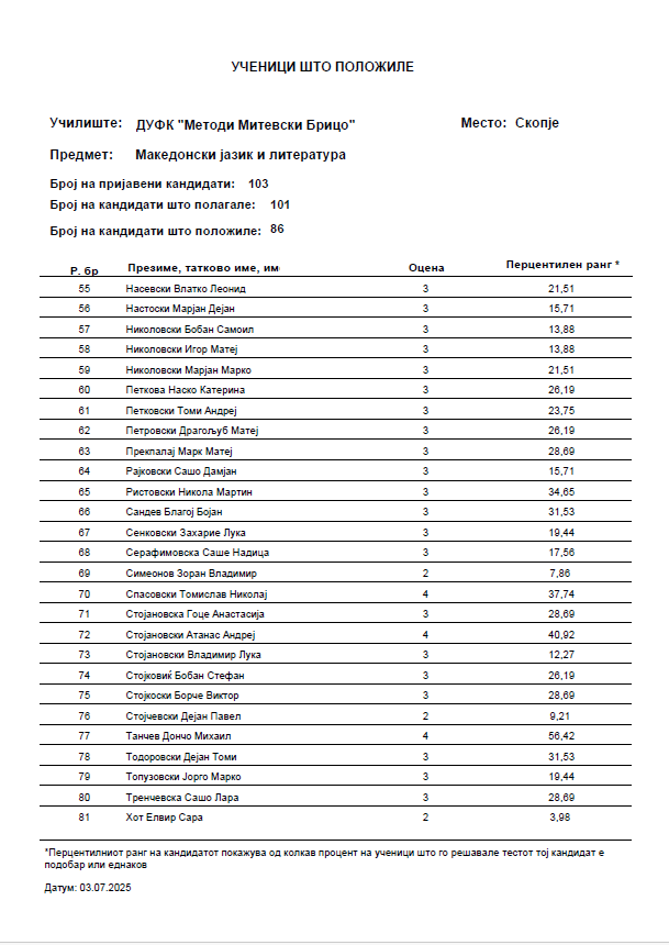 2025-07-04 00:18:52Резултати од полагањето на Државна матура во учебната 2024/2025 година