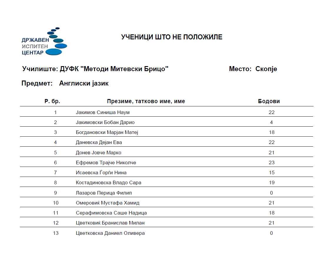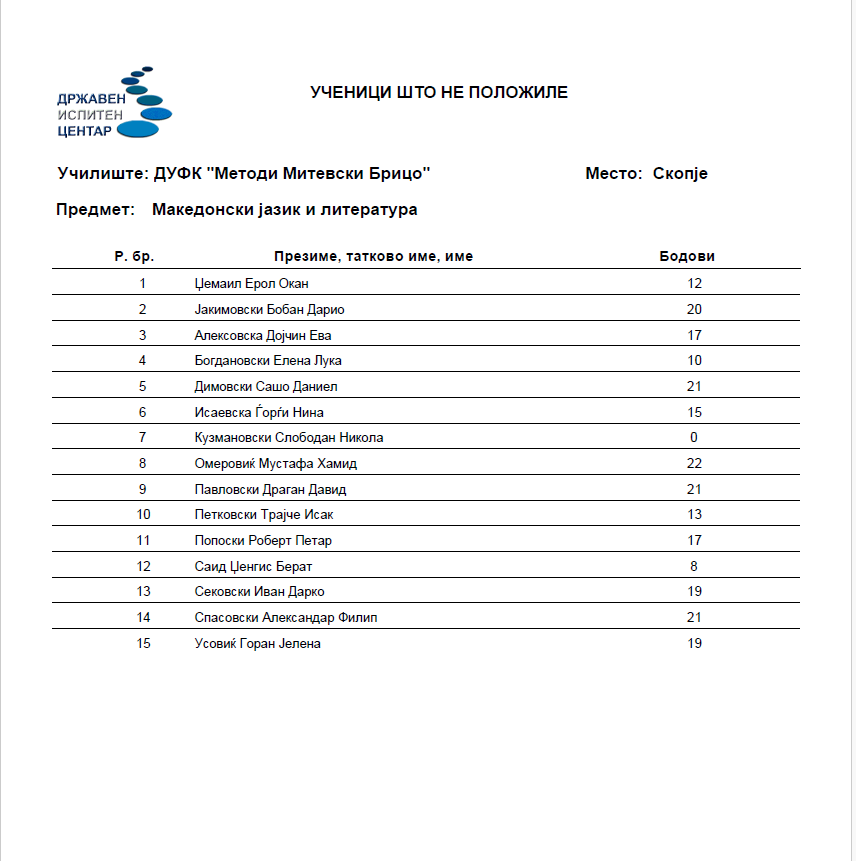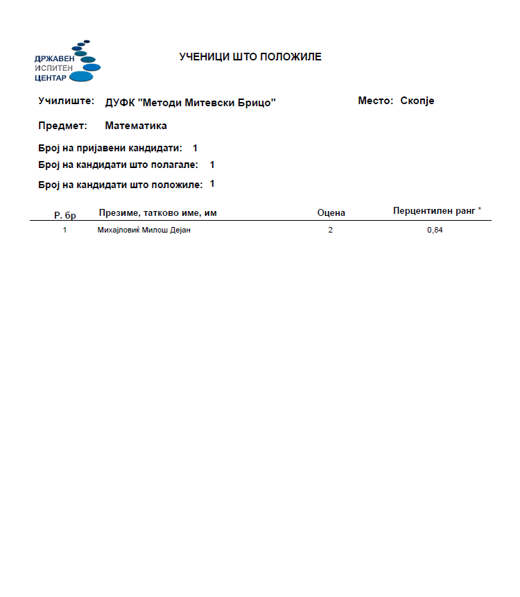 Резултати од полагањето на Државна матура во учебната 2024/2025 година2025-07-04 00:18:52Резултати од полагањето на Државна матура во учебната 2024/2025 година